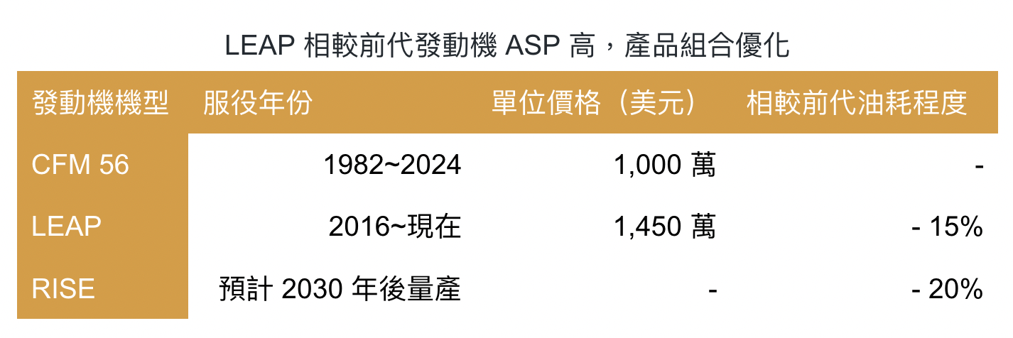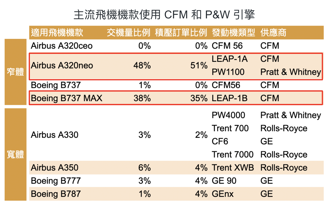 註1:CFM 為奇異與賽鋒(OTC:Safran) 50/50 合資成立的公司