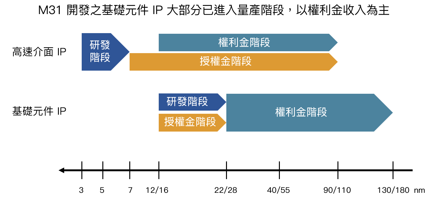 M31 權利金收入持續穩定增加,預期隨基礎元件 IP 年採用量持續成長