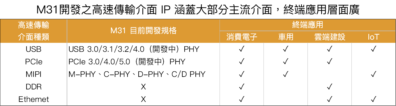 以下將分析 M31 各高速介面 IP 包含 USB、PCIe 和 MIPI 的現況及成長潛力