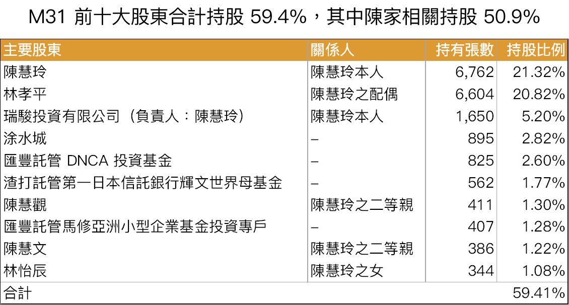 M31 經營團隊經驗豐富,且股權結構集中穩定