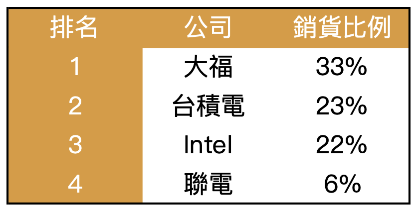 註:大福為日本無塵室之自動化倉儲運送機械設備廠,台積電為縮短裝機時程及提高設備生產效率,將部分廠區設備之規劃委由大福統籌,因此對大福之銷售主因為台積電所需。台積電透過家碩科技來改裝村田、大福的充氣結構。目前台積電會下單給大福,並由家碩科技改盤面的充氣結構。