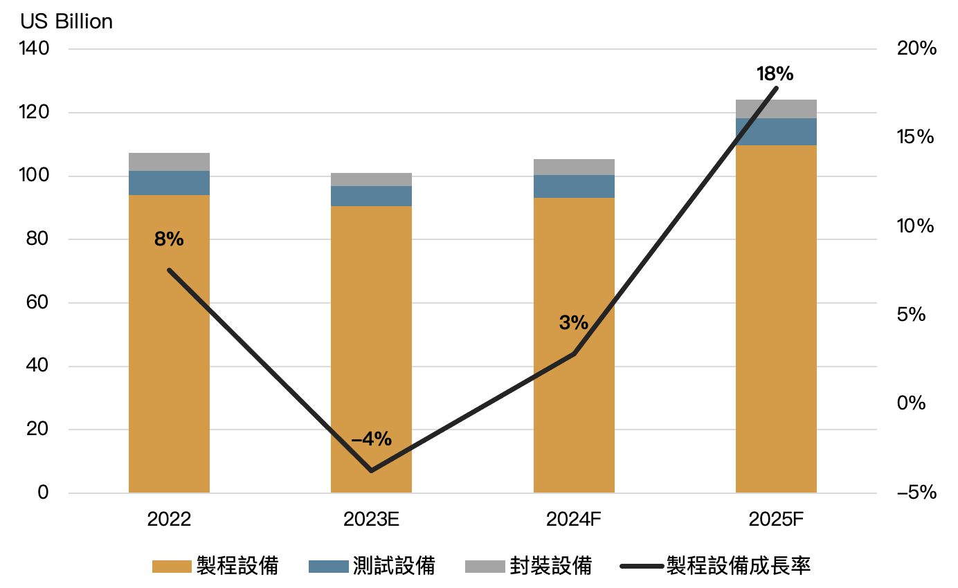 預期隨 2025 年晶圓廠落成、產能擴張,將帶動製程設備需求成長加速