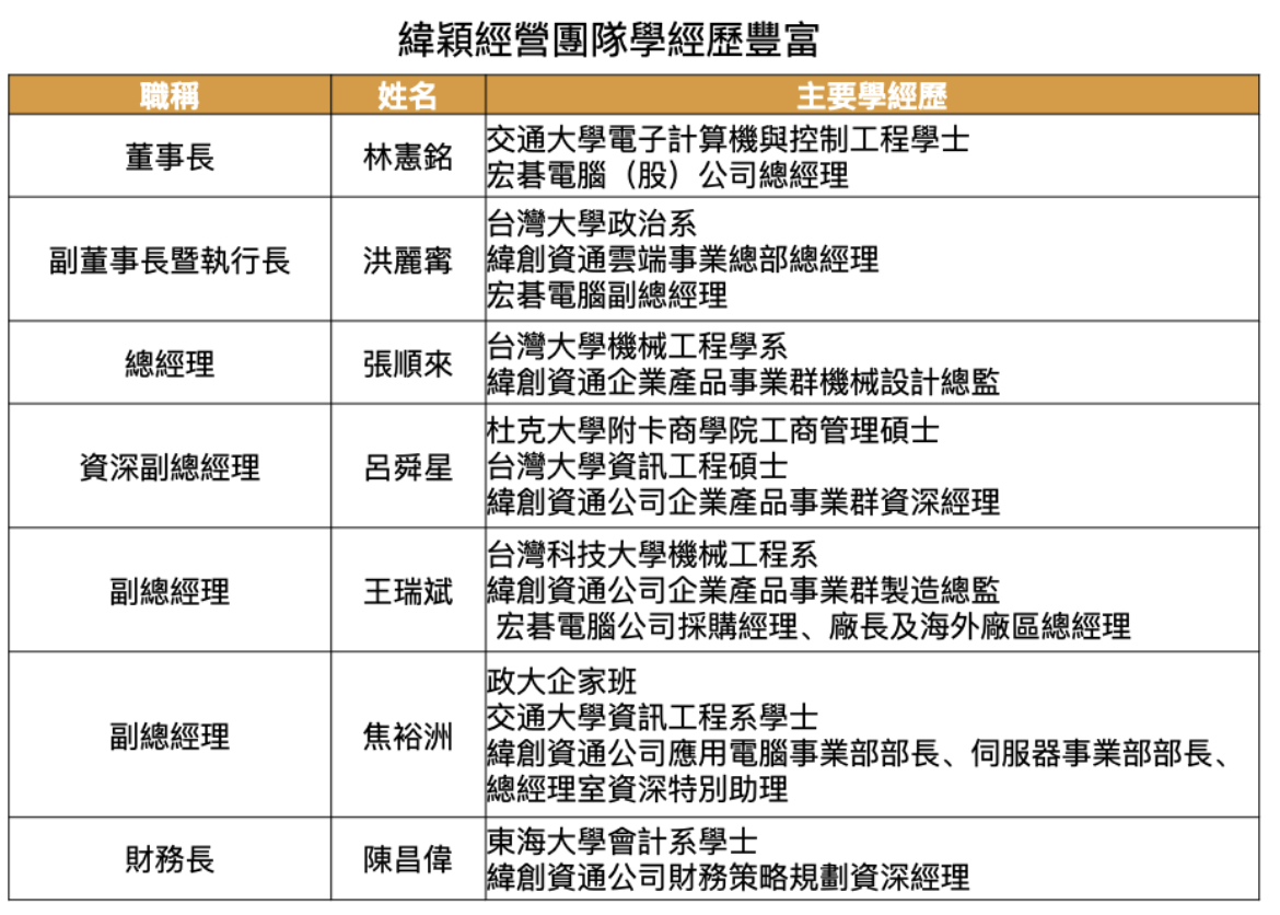 緯穎經營團隊多具豐富產業、學界經驗,近年營收成長快速,過往經營績效佳