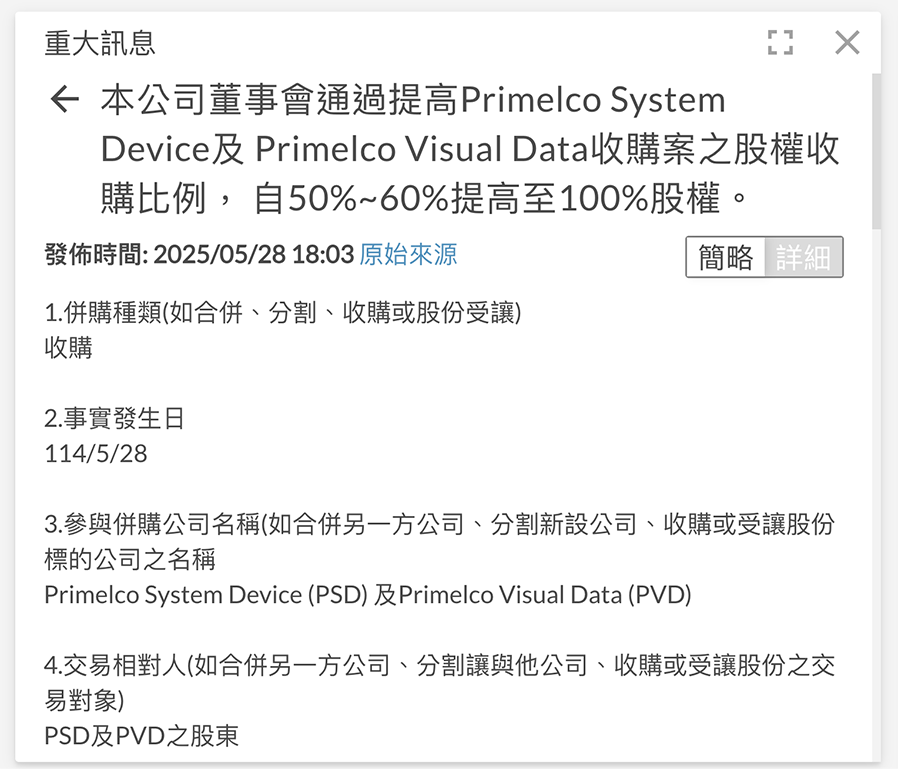 重大訊息 – 併購瑞士公司消息