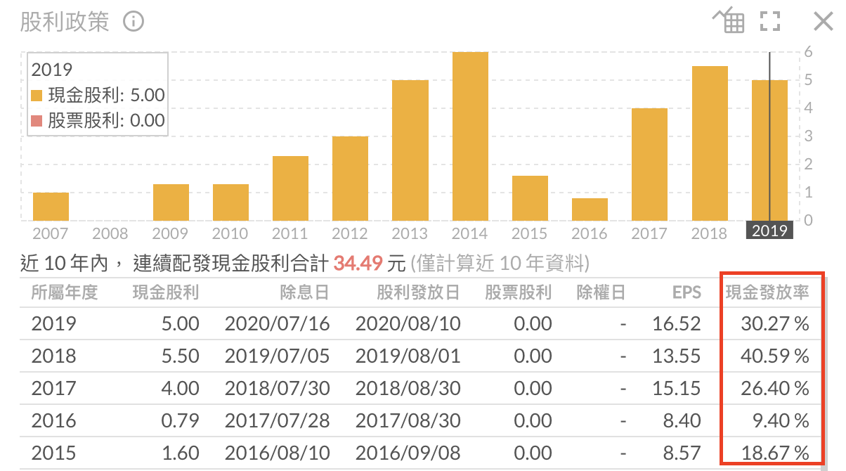 想查詢現金發放率,請前往富果開啓股利政策卡片,並更換股票至自己有興趣的標的。