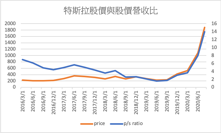 實務上股價營收比常使用在評價導入期的新創公司或成長期的公司,此類型公司通常尚未進入獲利階段。舉例來說屬於成長期的特斯拉(TSLA) 即較適合運用股價營收比作為估值依據,主因為其盈餘尚未完全轉正,但已有相對穩定的營收能夠作為評估依據。