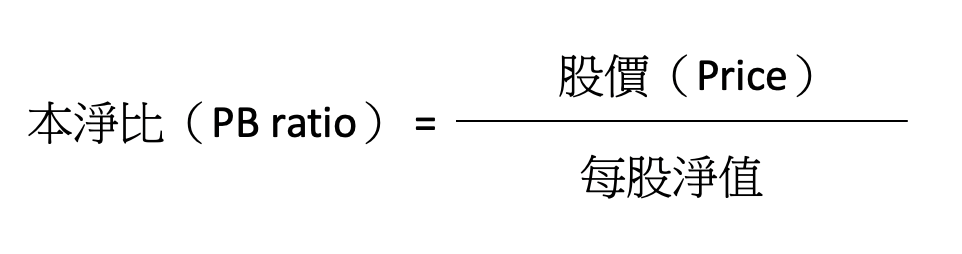 本淨比(Price-to-Book Ratio, PB ratio),就是股價相對於每股淨值的比率。本淨比的計算方式,是用股價除以每股淨值(book value),或是市價除以股東權益,代表目前公司市值是淨值的幾倍。