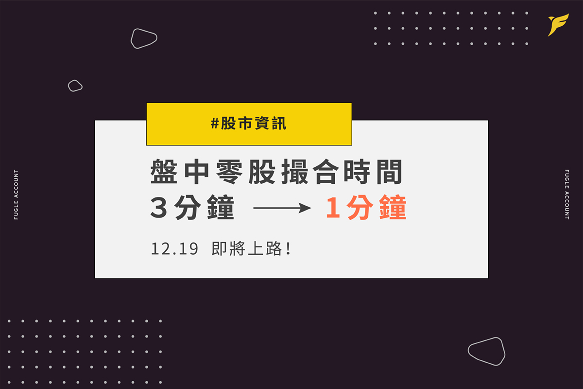 證交所今年八月宣布,盤中零股(9:10 第一次撮合~13:30)交易撮合間隔時間將由現行 3 分鐘縮短至 1 分鐘,從今年 12/19 開始實施。