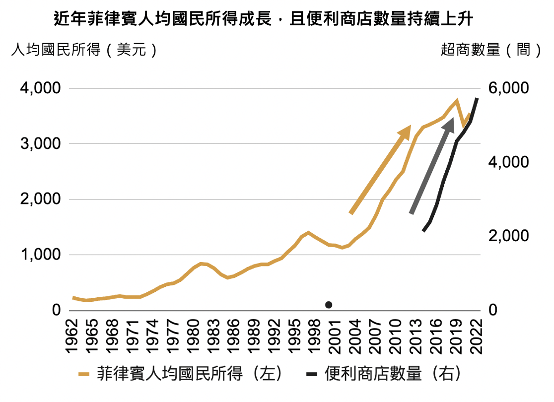 隨菲律賓人均所得、都市化程度逐步提升,預計將帶動超商產業發展