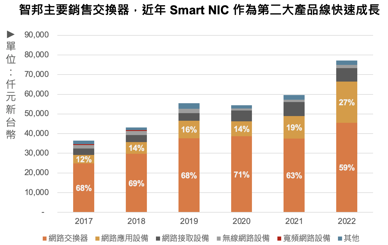 - Smart NIC 相關產品使智邦能從雲端業者的快速成長中大幅受惠,網路應用設備業務將穩定成長