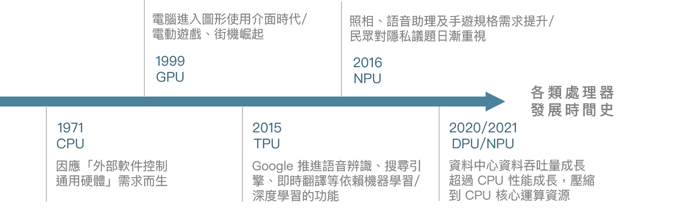 註:通用處理器代表各類型的運算都能進行,不會受限於應用,目前僅 CPU 及 GPU 兩種為公認的通用處理器。