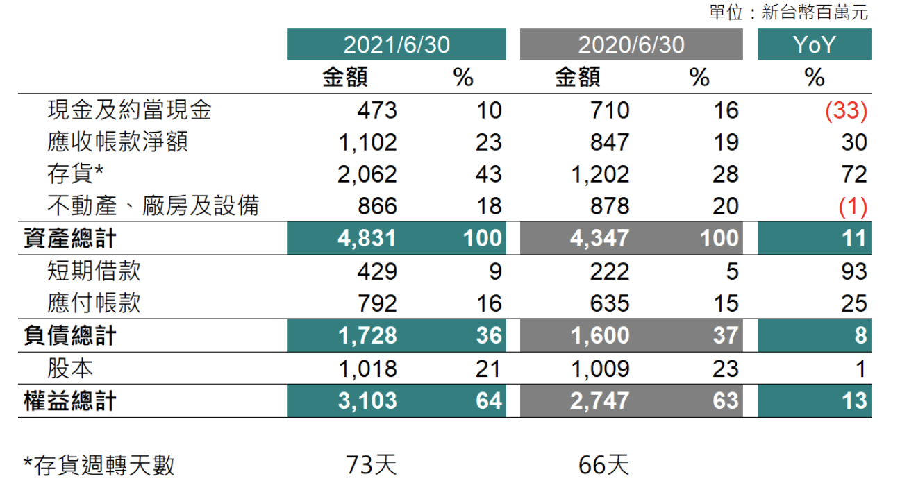 2. 公司 2021Q2 庫存水位為 20.6 億元,明顯高於以往 8-15 億元的水準,主要為替下半年提前備貨,以及公司工控產品在上半年因缺料而遞延出貨。 因此預估下半年在記憶體的漲價趨勢持續下,公司的低價庫存將有望帶動整體毛利率的上升。