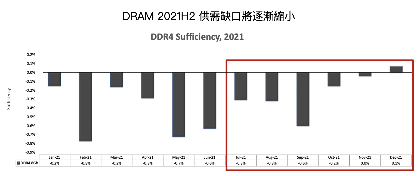 研究團隊認為 2021 下半年在長短料、Overbooking 以及需求端因消費轉移的減少下,記憶體的景氣預計將不如上半年強勁,成長動能也有可能趨緩。