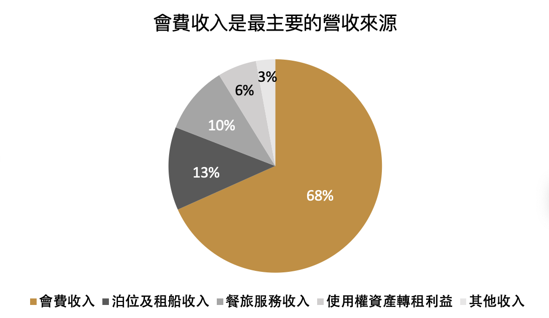 亞果遊艇(興櫃:7566)的商業模式是提供會員遊艇相關的服務(如:泊位租借、會所使用權、船艦租借等),因此營收來源約 7 成來自會員卡收入。
