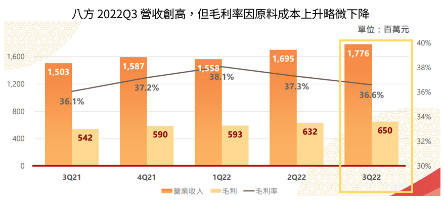 2022Q3 雖毛利率因通膨而降低,但因營收成長、業外補助,獲利仍創歷史新高