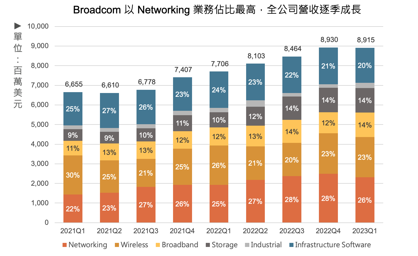 Networking 為 Broadcom 傳統強項,亦為最主要的營收來源