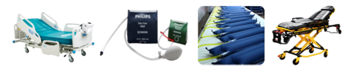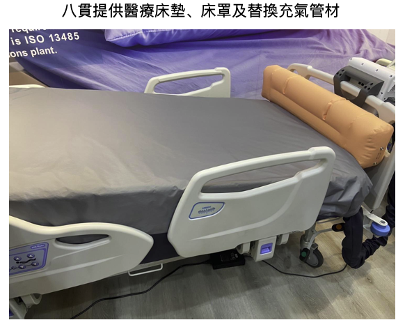 八貫的醫療產品包括各式醫療氣墊床/椅、血壓計袖套、輪椅墊、復健器材、搬運床、擔架等。