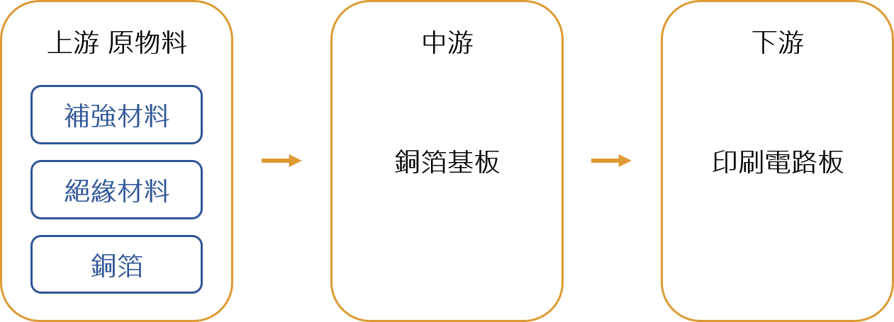 CCL 位於 PCB 產業的中游,其上游包括提供補強材料(如玻璃纖維、棉紙等)、絕緣材料(如環氧樹脂、聚酯等)和銅箔,經中游的製造商加工成 CCL 後,再交由下游廠進行蝕刻、打孔製作成 PCB 。