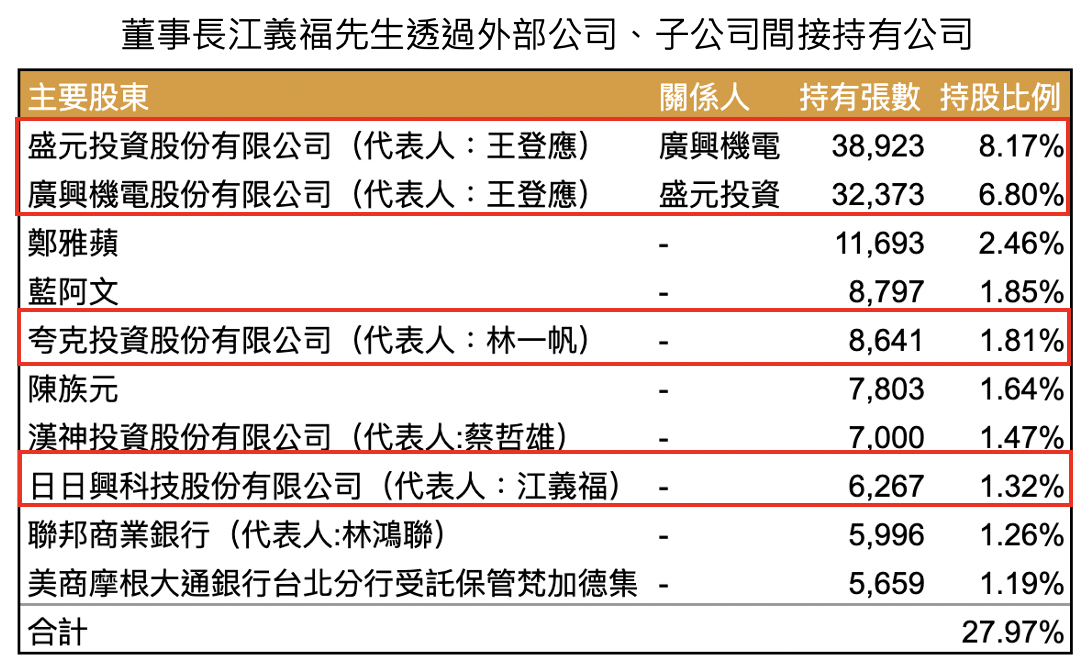 股權方面,董事長江義福先生透過盛元投資、廣興機電、夸克投資與日日興等關聯企業交叉持股,共持有中興電 18.1% 的股份,且過去 8 年股份比例皆維持;而鄭雅蘋、藍阿文與陳族元為專職投資人,預期短期不會有大波動;漢神投資長期持股無大波動;聯邦商業銀行於 2020 年入股,由於近期聯邦集團積極投資綠能領域,判斷為中興電切入綠能發電領域,因此聯邦銀行加入成為股東,短期持股比例並不會有大波動,此外,公司千張股東持股比例達 49.8%,整體股權集中穩定。
