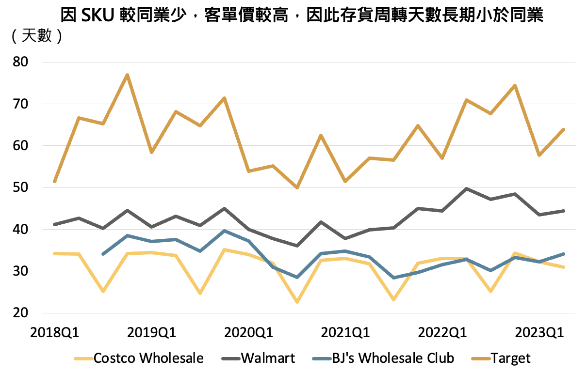 註: BJ’s Wholesale 也採用降低 SKU 策略,因此存貨週轉天數較低