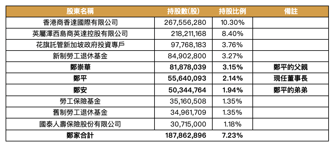鄭家持股約達 7.23% ,後續可持續留意前兩大股東持股數變化
