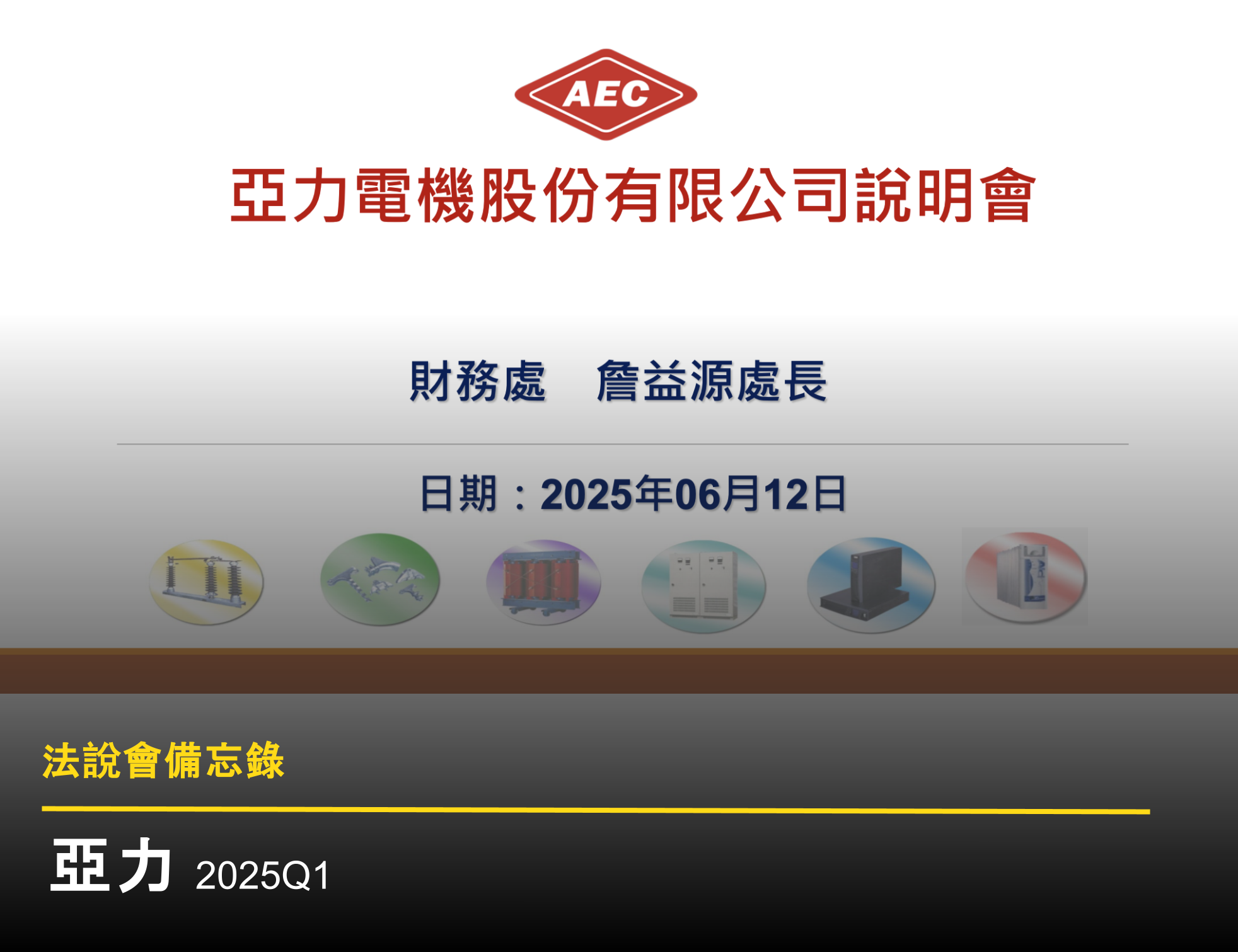 - Q: 大同公司被禁止參與政府標案,對亞力有何影響?A: 台電已就此事與同業開會。大同無法投標,其原本的份額將由市場上其他合格廠商共同承接。我們與大同在變壓器產品上的重疊度較高。