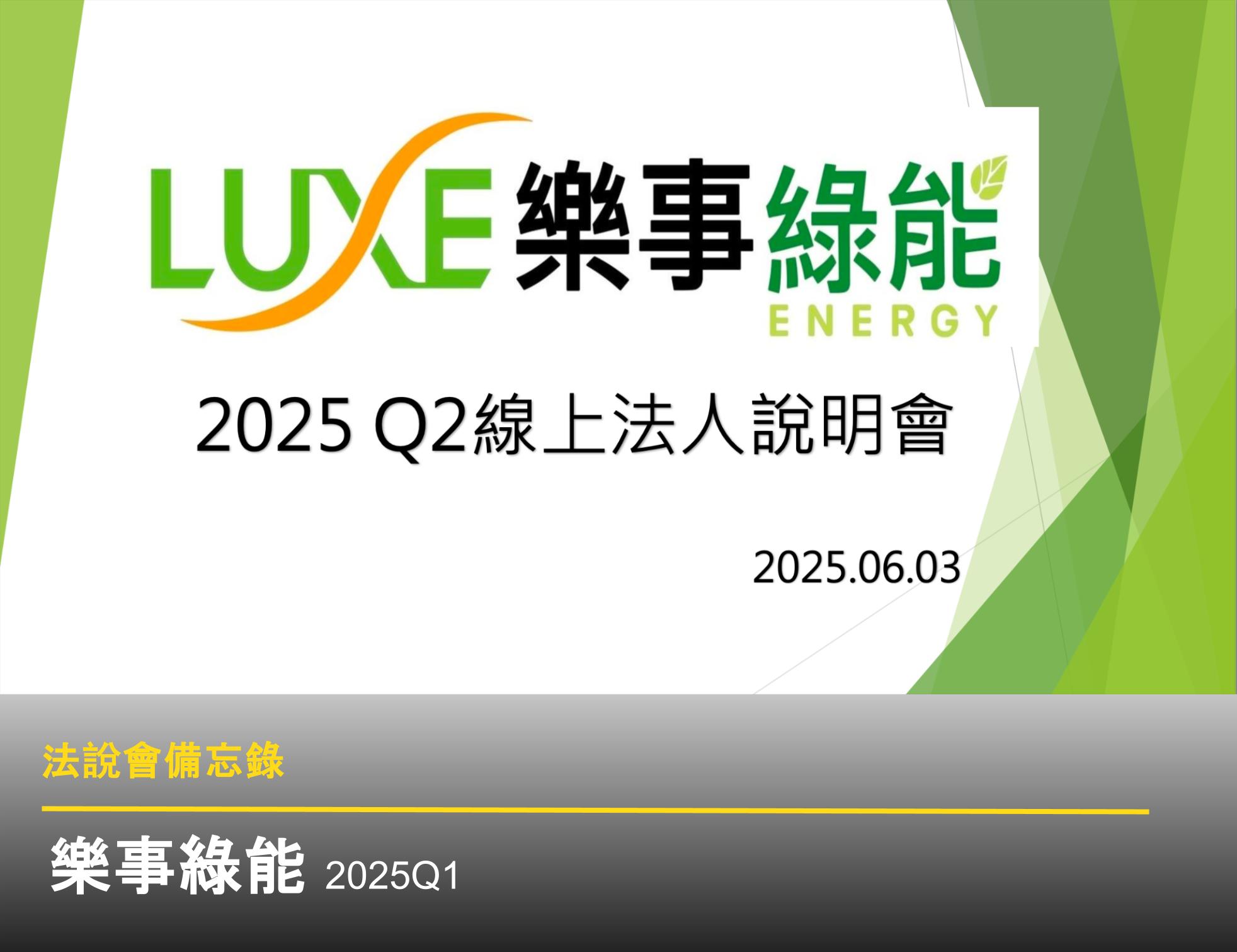 樂事綠能 2025 年第一季營運表現顯著成長,主要受惠於亭置式變壓器出貨增加。公司持續發展太陽能電廠業務,並透過子公司萬全營造拓展營建市場。
