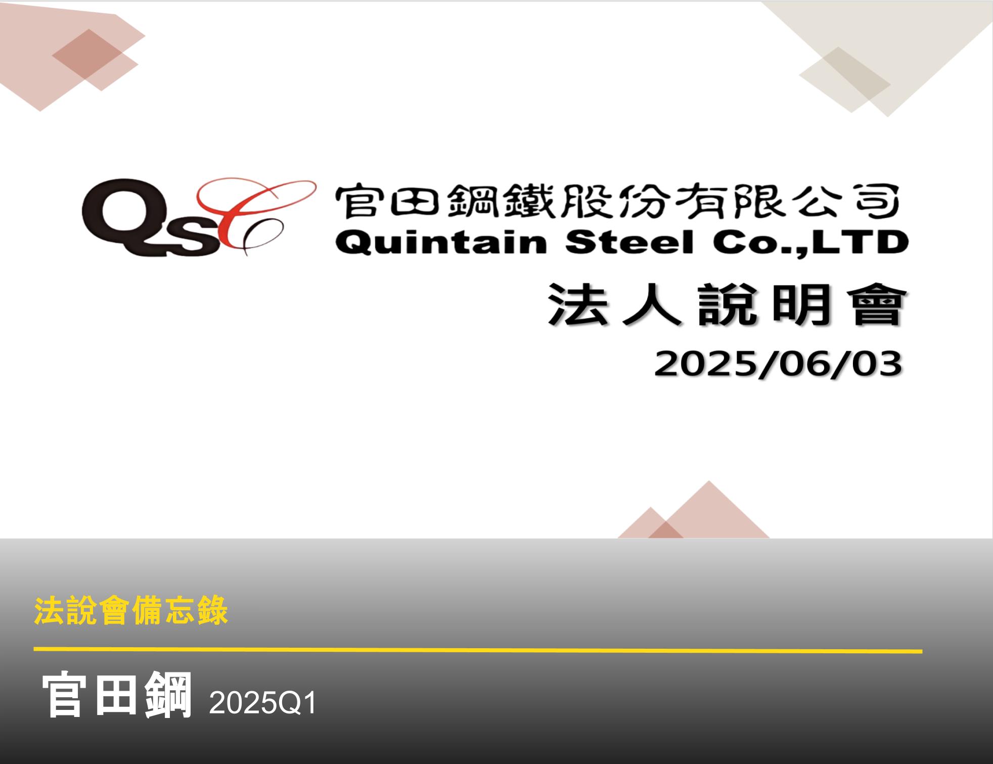 - 外銷:約佔 二成多 (22%)。外銷以螺絲產品為主,其佔比持續提升,從 2024Q2 的 5%,2024Q3 的 9%,2024Q4 的 11%,至 2025Q1 已達 22%。