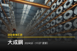 - 關稅動態:川普提出上任後對進口產品課徵 10% 關稅,相較先前 60% 的威脅,市場視為緩和信號。管理層認為,美中雙方已開始透過政策對話,而非單純的關稅戰。中國取消鋁出口退稅,可視為對此的回應。