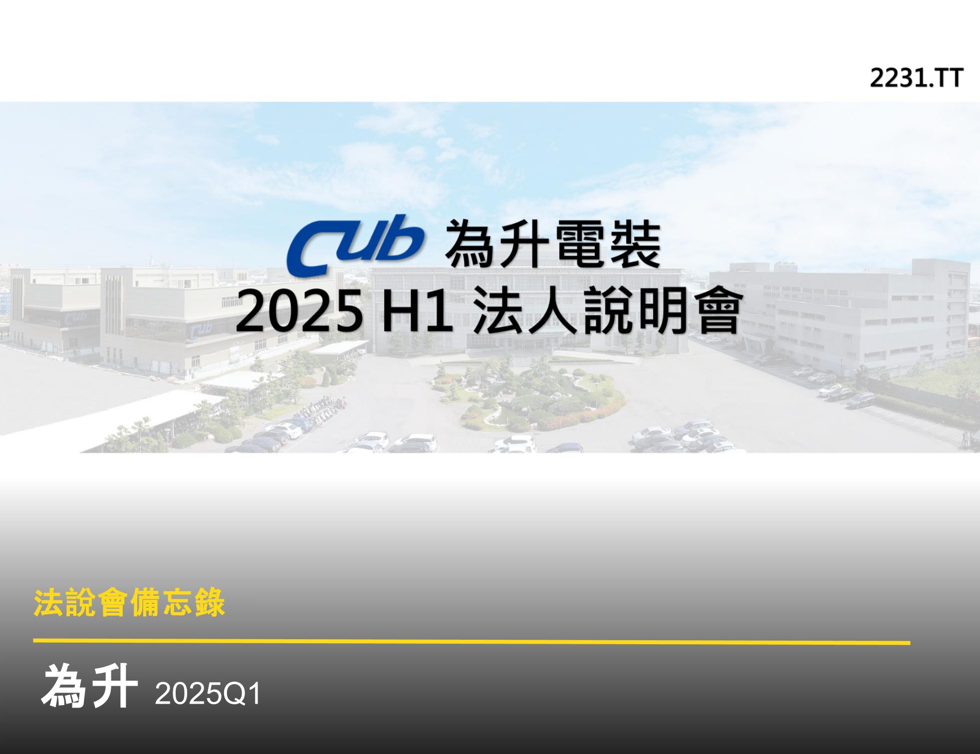為升電裝於 2025 年 6 月 5 日舉行上半年法人說明會,說明公司營運狀況及未來展望。