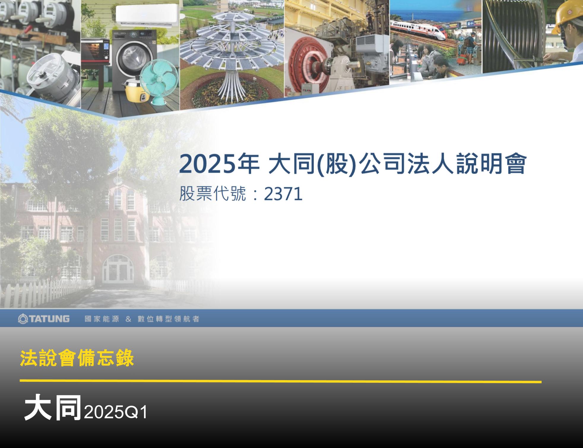 - Q: 大同智能 2025 年展望如何?A: 儲能業務因臺電標案暫停而稍微放緩,但其他新業務如碳盤查、碳權交易等預期將成長,整體仍樂觀看待。