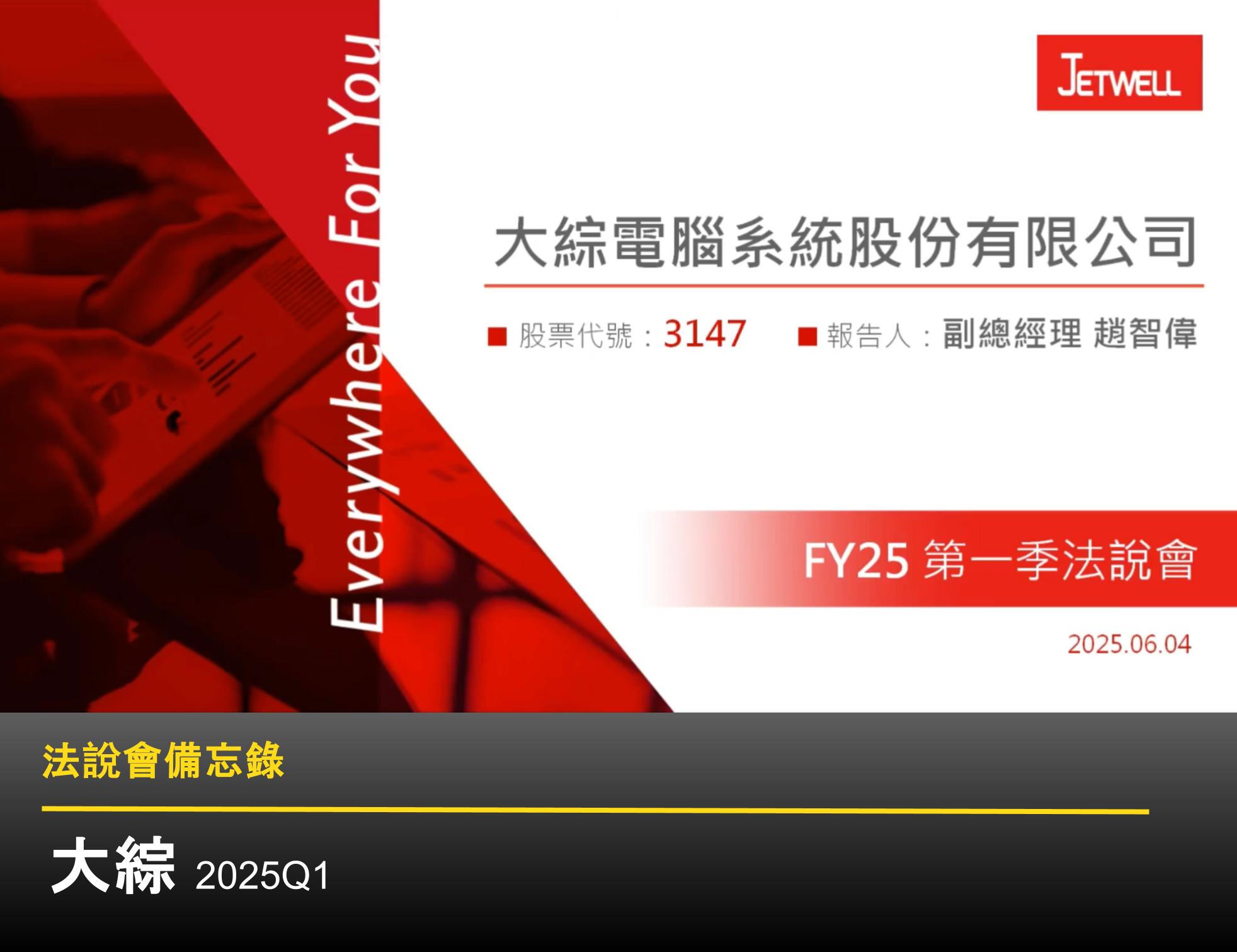 - 未來展望:公司對 2025 年整體營運保持樂觀,預期將優於 2024 年。成長動能主要來自 AI 趨勢、半導體產業帶動的製造業需求,以及企業數位轉型。財務長預估 2025 全年營收有望達到 60 幾億至 80 億元。