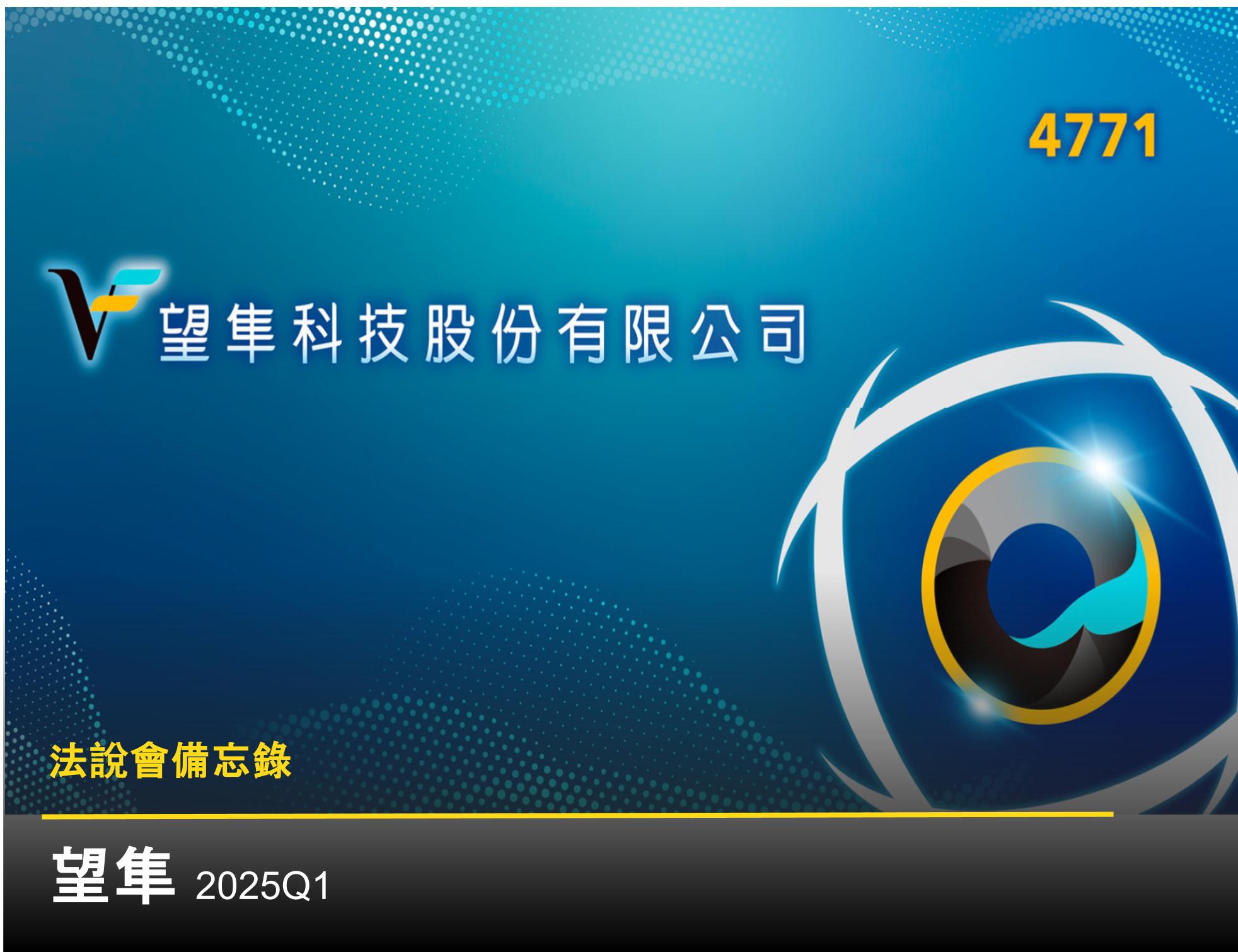 望隼科技總經理史安於本次法說會分享 2025 年第一季之營運成果與未來展望。公司第一季營收為 8.1 億元,較去年同期成長約 6 %。毛利率表現良好,達到 41 %,優於去年全年的 39 %。營業利益率為 29 %,稅後淨利率為 25 %。第一季每股盈餘 (EPS) 為 3.32 元,略低於去年同期(約 3.4 元),主要係因上市增資導致股本稀釋所致。