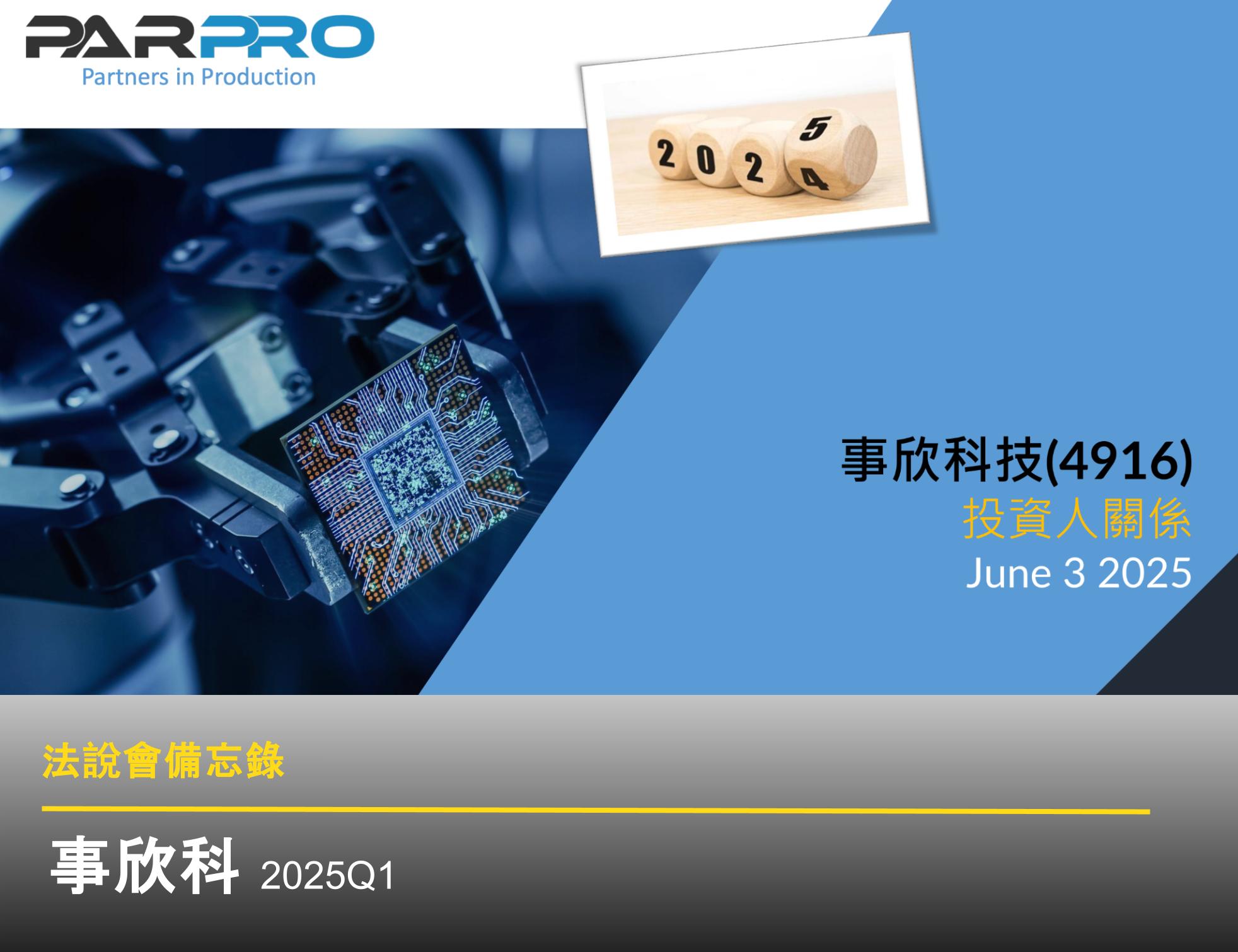 - 航太國防:已接獲航空業大廠訂單,初期出貨預計落在 2025Q3 及 Q4。持續看好國防預算帶動的訂單需求。