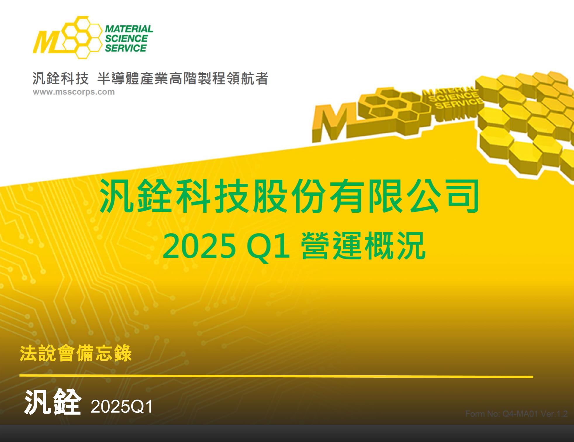 - 整體營運狀況:公司核心業務為材料分析 (MA),目前已進入埃米 (Ångström) 世代製程。2025Q1 因農曆春節工作天數減少,營收較低,導致單季虧損。董事長柳紀綸指出,2025 年 2 月份營收約 1.2 億餘元,單月虧損達 4,000 至 5,000 萬元,直接影響第一季每股盈餘為 -0.94 元。