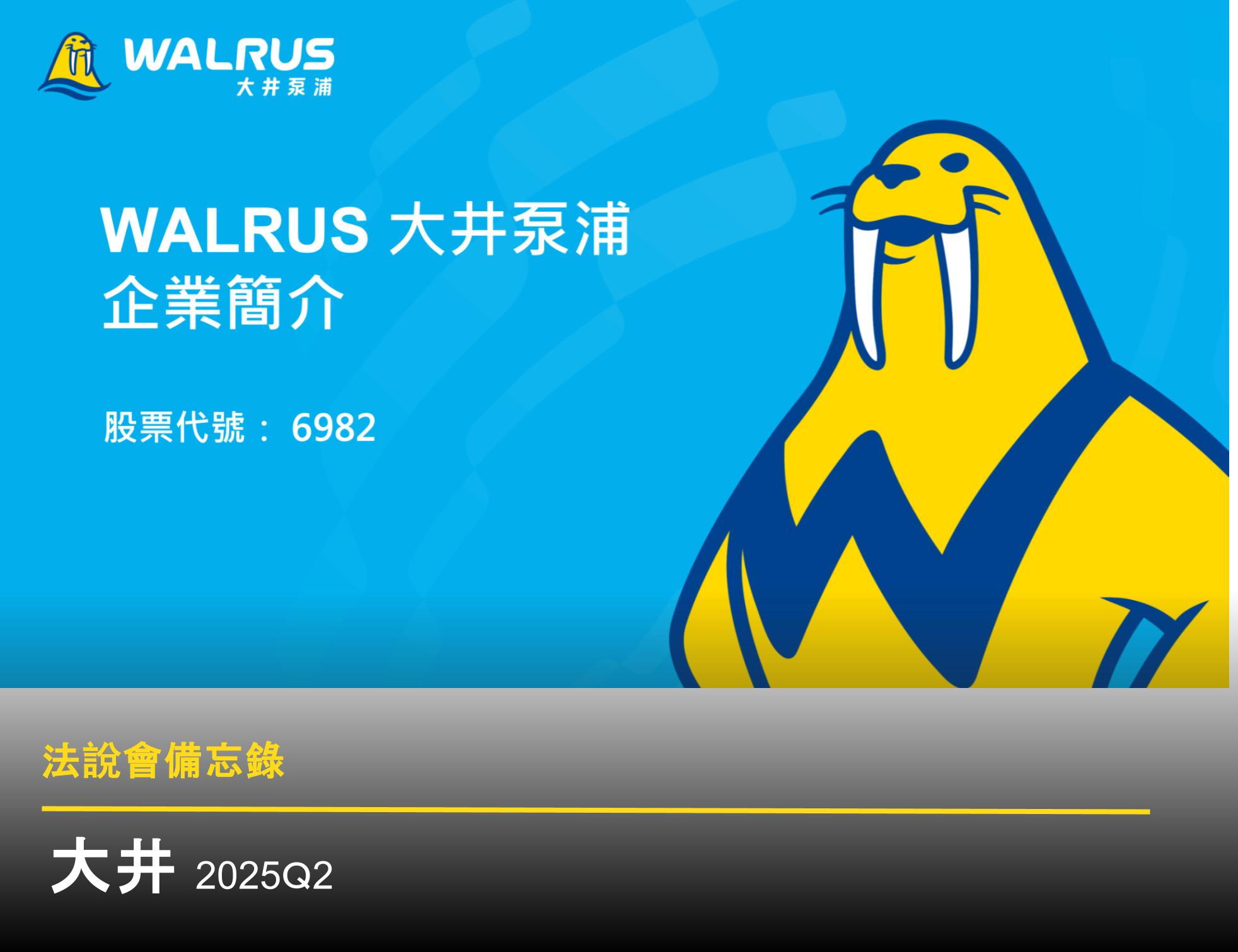 大井泵浦(櫃:6982)2025 上半年合併營收為新台幣 8.53 億元,營業毛利 2.31 億元,稅前淨利 3,791 萬元,稅後淨利 3,355 萬元,每股盈餘 (EPS) 0.83 元。