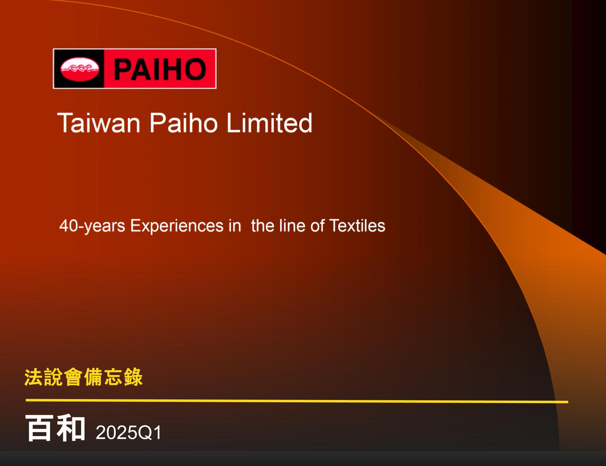 百和(市:9938)於 2025 年 4 月 24 日舉行法說會,由發言人代表公司向投資人說明 2025 年第一季的營運狀況。本次法說會較往常延後約一週舉行。