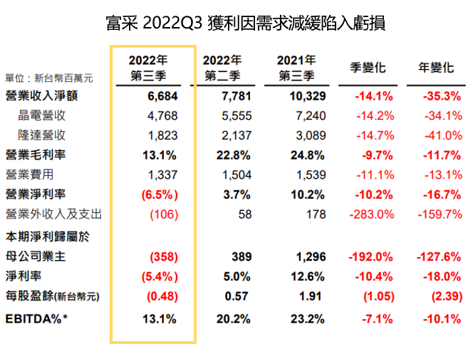 2022Q3 營運因產能利用率降低、提列庫存損失陷入虧損