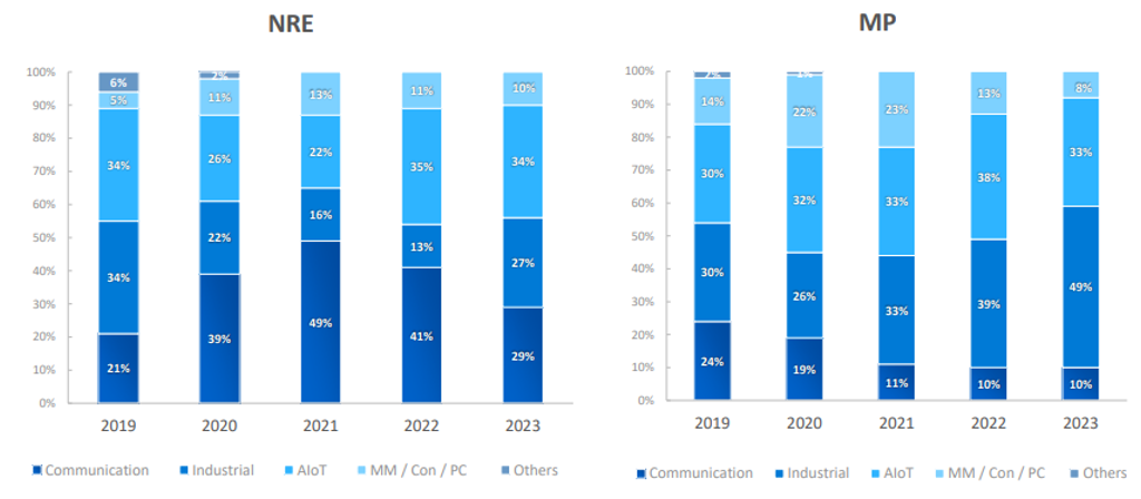 公司 2023 年營收雖因庫存去化而衰退,但以先進製程為主的 IP、NRE 仍維持成長