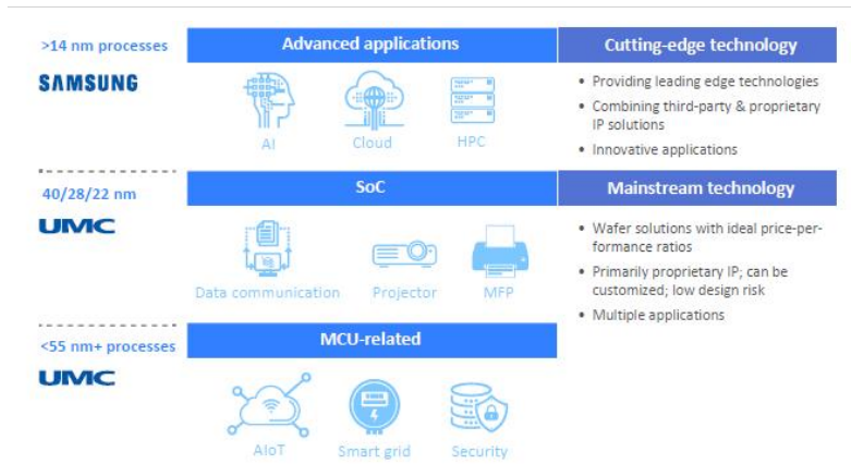 產品服務介紹:智原 ASIC 28nm 以上成熟製程與聯電綁定,14nm 以下則與三星合作