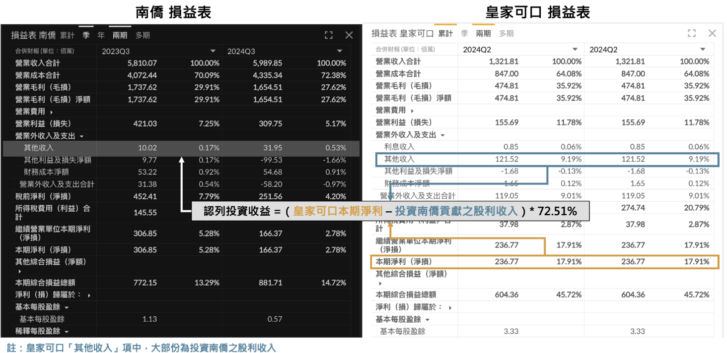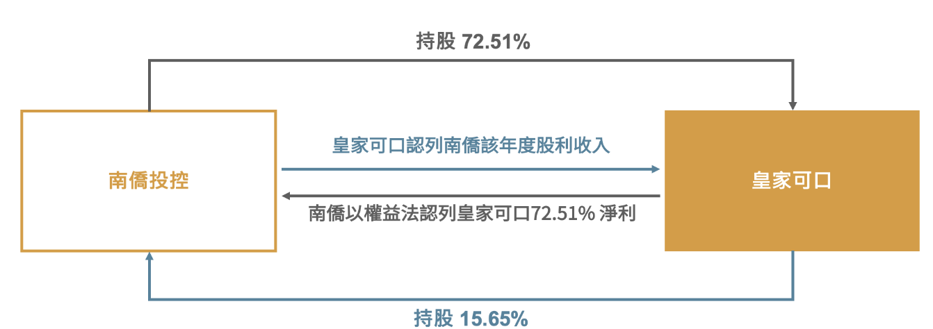 而對於讀者可能有的疑問:「皇家可口認列南僑的股利收入,但同時南僑也會認列皇家可口的獲利,這樣是否會重複認列導致獲利虛胖?」