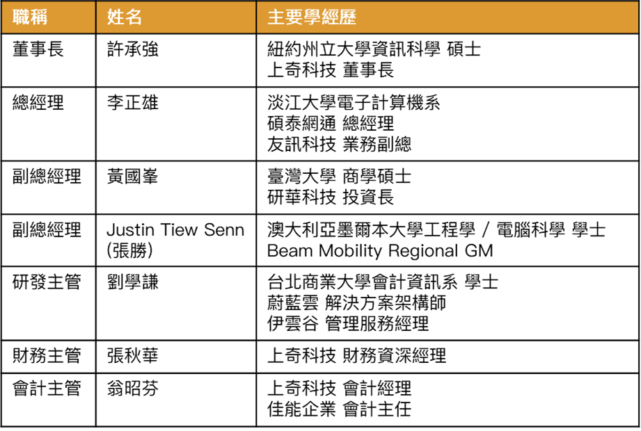 經營層於業界已有數十年經歷,除了能掌握產業趨勢,也可加速建立新創生態系