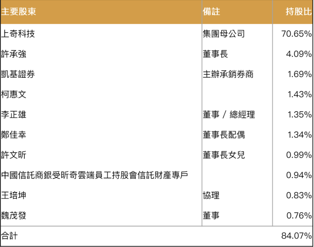 上奇與昕奇雲端經營層持股超過 8 成,且上奇為昕奇雲端之重要合作夥伴,股權集中穩定