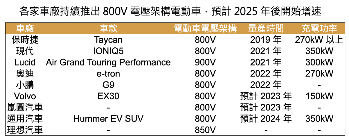 基於充電效率,各家廠商將選擇高電壓作為提高功率之手段
