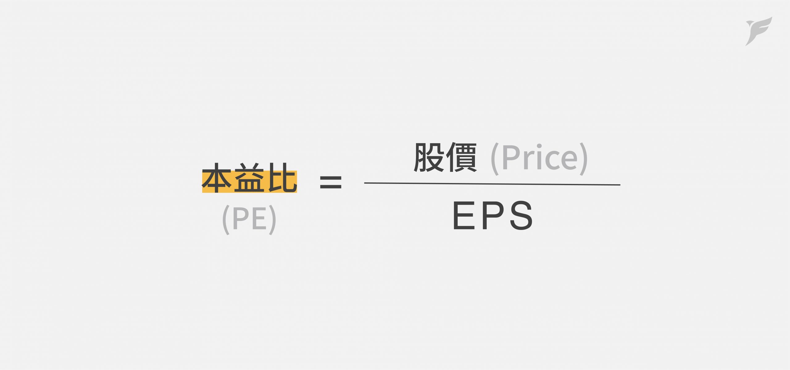 以本益比為例,本益比的公式等於股價(Price)除以 EPS,