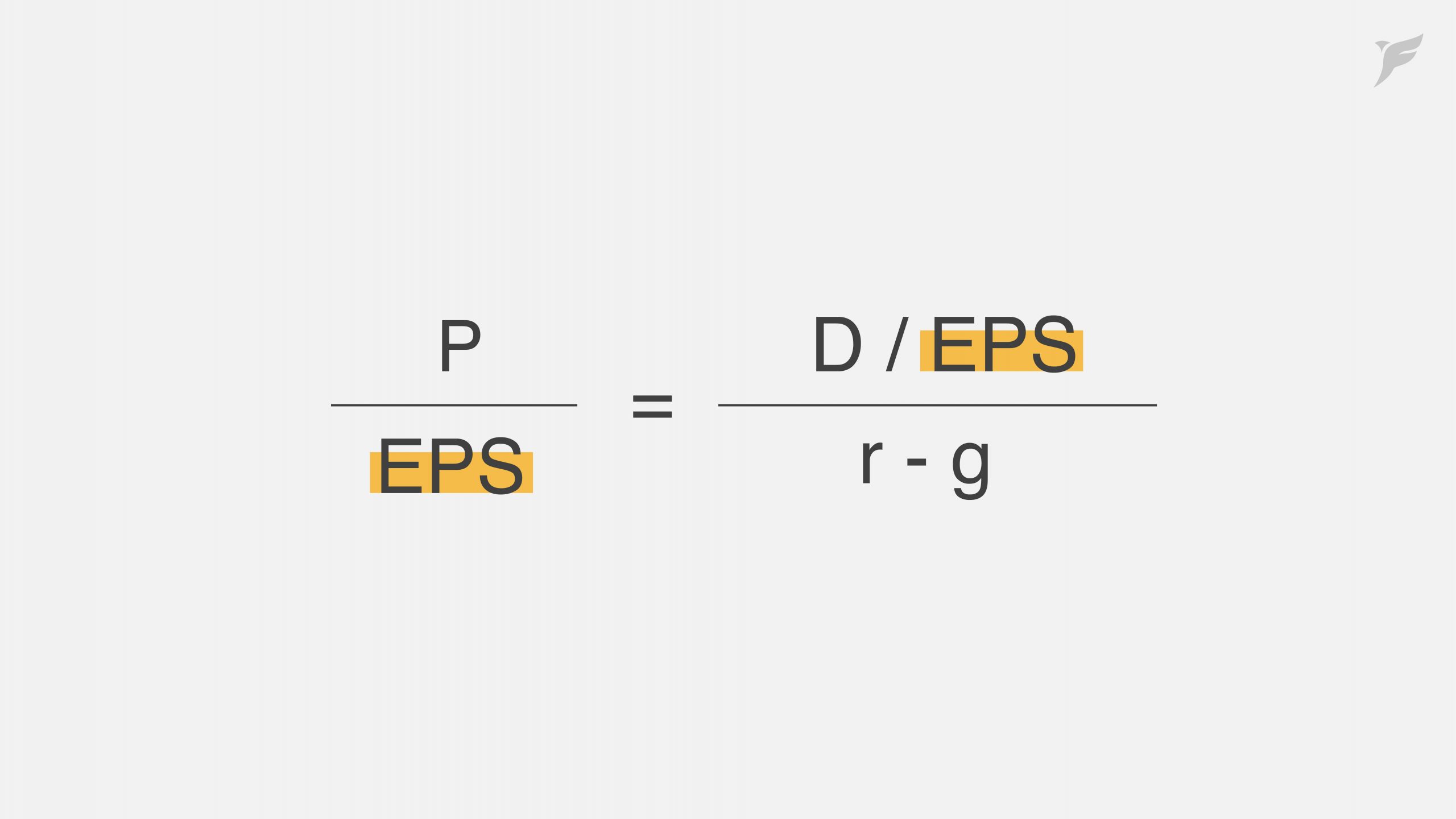 將這個等式同除以 EPS 就可以得出 P / EPS = ( D / EPS) / (r – g),