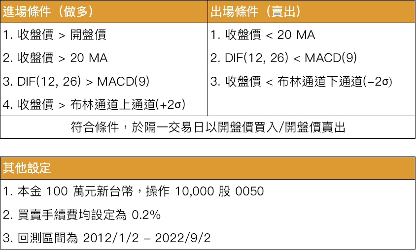 以布林通道和 MACD 為策略主軸,實際執行策略開發