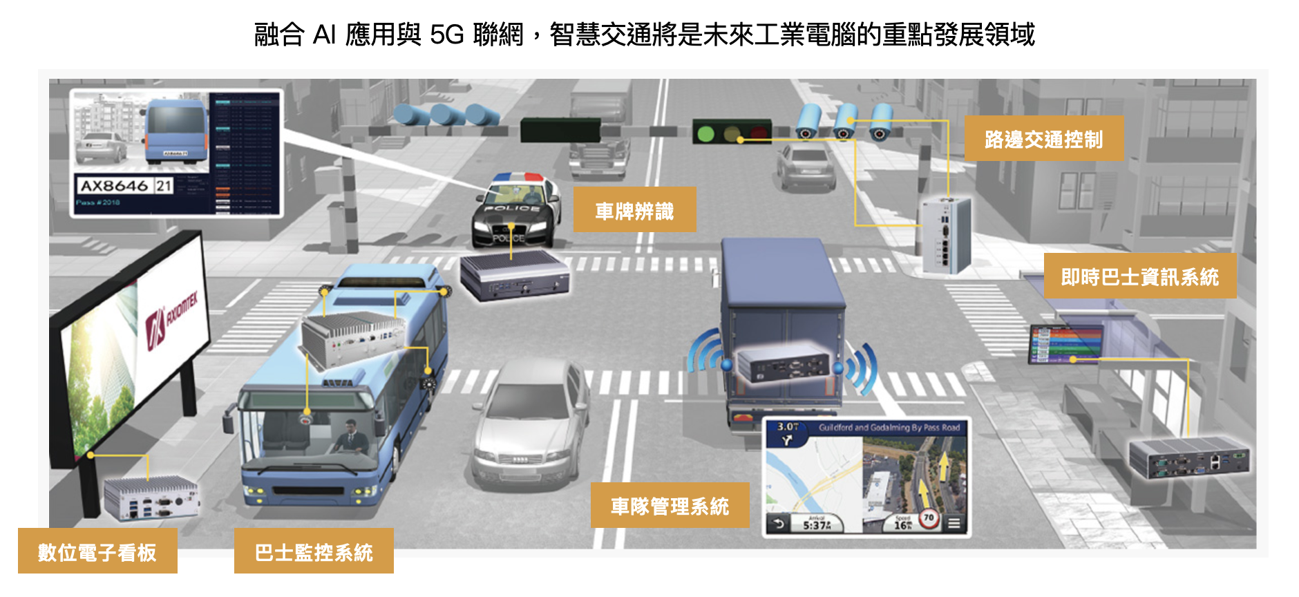 因此,在車內、交通設施、車牌辨識、紅綠燈號等勢必都要連上網路,且因是戶外環境,這些聯網設備也必須能承受多變、惡劣的天氣環境,而這些就是工業電腦應用的地方。