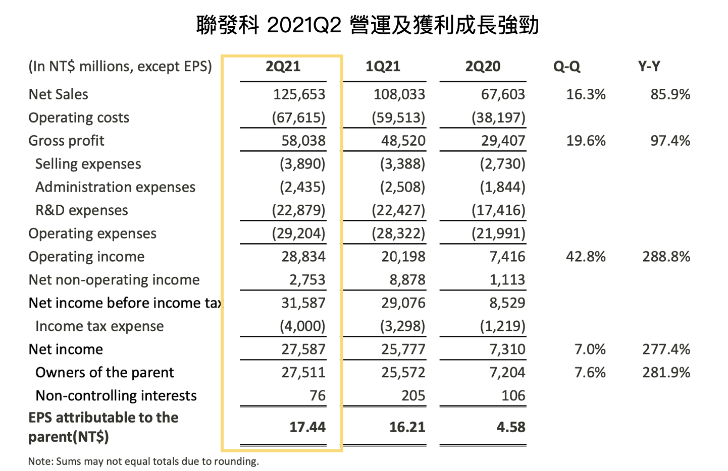 - 聯發科 2021Q2 營運概況