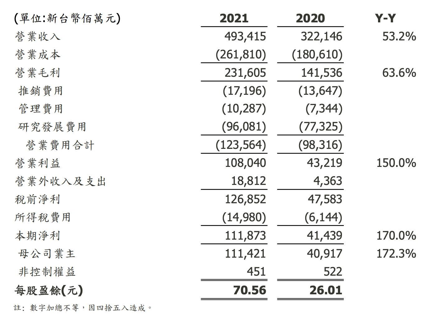 2021 年度損益表